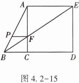 16. (★★★)如图 4.2-15,$\angle ACB = 90^{\circ}$,以$AC$为边向外作正方形$ACDE$,$BE$交$AC$于点$F$,$FP// BC$交$AB$于点$P$,求证:$FC = FP$。