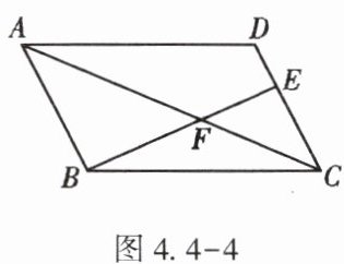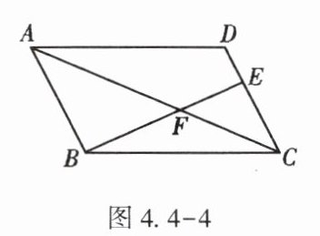 8. (★) 如图4.4-4,在□ABCD中,点E在DC上. 若DE:EC = 1:2,则BF:BE =