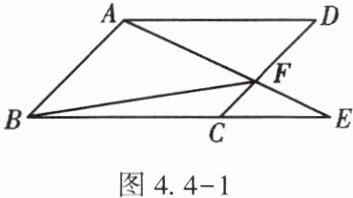 4. (★) 如图4.4-1,E是□ABCD的边BC延长线上一点,连接AE,交CD于点F,连接BF. 写出图中任意一对相似三角形: