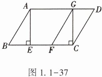 16. (★★)如图1.1-37,已知在□ABCD中,AE是BC边上的高,将△ABE沿BC方向平移,使点E与点C重合,得△GFC。