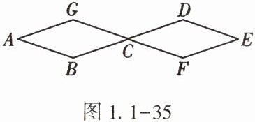 14. (★★)如图1.1-35,两个全等菱形的边长为1厘米,一只蚂蚁由点A开始按A→B→C→D→E→F→C→G→A→…的顺序沿菱形的边循环爬动,行走2029厘米后停下,则这只蚂蚁停在