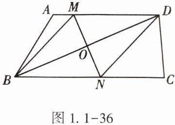 15. (★★)如图1.1-36,在四边形ABCD中,AD//BC,对角线BD的垂直平分线与边AD,BC分别相交于点M,N。