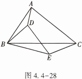 14. (★★) 如图 4.4 - 28,已知∠DAB = ∠ECB,∠ABD = ∠CBE. 求证:△ABC ∽ △DBE.
