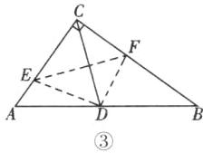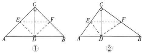 (1)当AC=BC=2时,△ABC为等腰直角三角形,如图①所示。此时D为AB边中点,AD=$\sqrt{2}$。