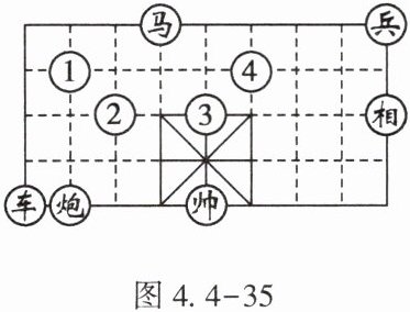 10. (★)在如图4.4-35所示的象棋盘(各个小正方形的边长均相等)中,根据“马走日”的规则,“马”应落在下列哪个位置处,能使“马”“车”“炮”所在位置的格点构成的三角形与“帅”“相”“兵”所在位置的格点构成的三角形相似 【 】