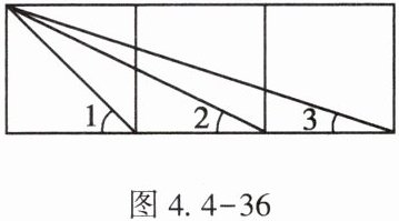 11. (★)图4.4-36所示的是三个并列的边长相同的正方形,则$\angle 1+\angle 2+\angle 3$的度数为