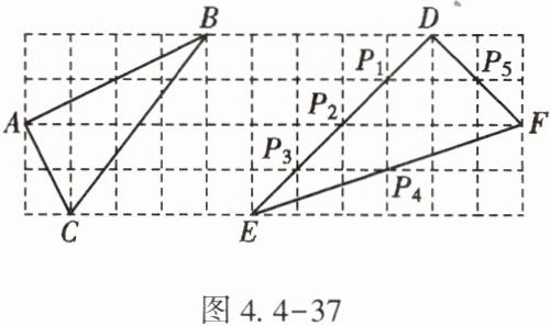 (2)$P_1$,$P_2$,$P_3$,$P_4$,$P_5$,D,F是$\triangle DEF$边上的7个格点,请在这7个格点中选取3个点作为三角形的顶点,使构成的三角形与$\triangle ABC$相似.(要求写出两个符合条件的三角形,并在图中连接相应线段,不必说明理由)