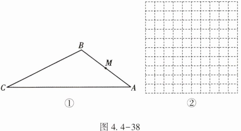 (1)如图4.4-38①,M为AB的中点,在线段AC上取点N,使$\triangle AMN$与$\triangle ABC$相似,求线段MN的长.