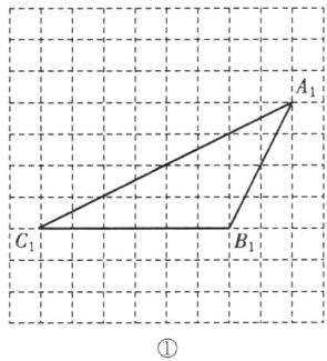 ①请你在所给的网格中画出格点$\triangle A_1B_1C_1$,使得$\triangle A_1B_1C_1$与$\triangle ABC$全等(画出一个即可,不需证明);