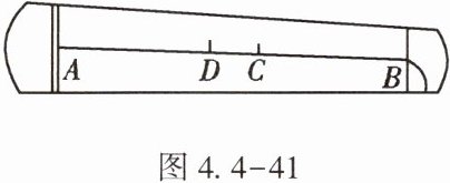 7. (★★)如图4.4-41,乐器上的一根弦AB=80cm,两个端点A,B固定在乐器板面上,支撑点C是靠近点B的黄金分割点,支撑点D是靠近点A的黄金分割点,则C,D之间的距离为 【 】