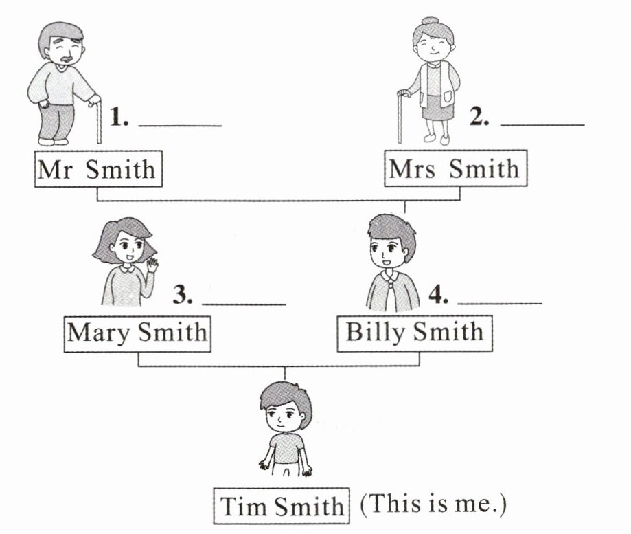 九、阅读家谱图,从方框中选择正确的称呼写在横线上(只填序号)。