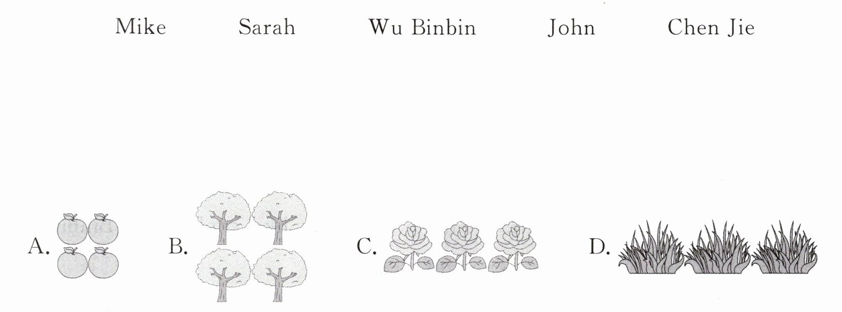Mike—C Sarah—D Wu Binbin,John—B Chen Jie—A