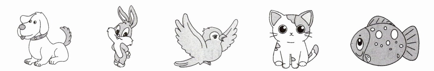 Hello,I'm Jack. I have a pet shop. You can see a bird,two(两只) rabbits,four(四只) cats and six(六只) dogs in my pet shop. Oh,what's this? It's my fish,Sammy. It's cute.