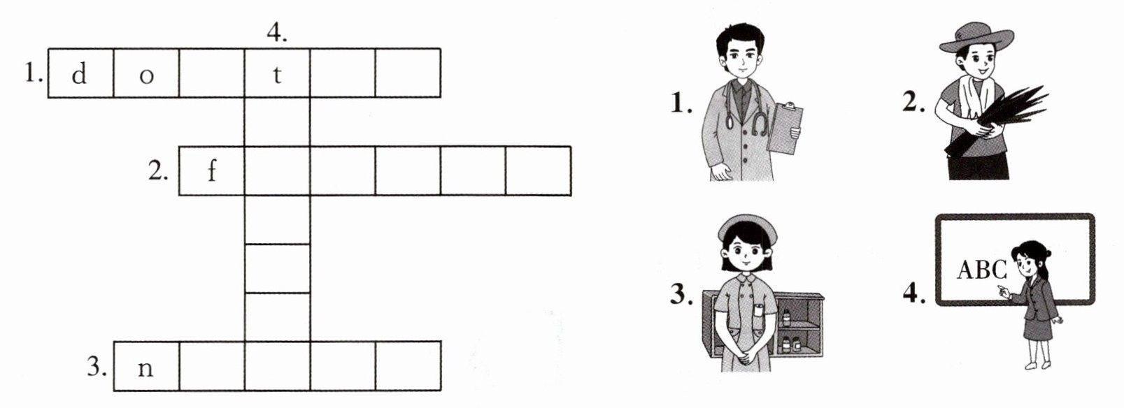 1. doctor 2. farmer 3. nurse 4. teacher