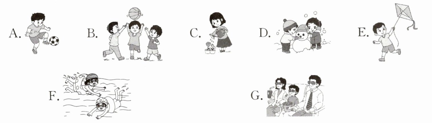 二、Mike 正在制作天气活动海报,现在他需要上网找一些图片素材。预习课本,请你帮助他找到相应的素材图,放在正确的位置。(有多余选项)