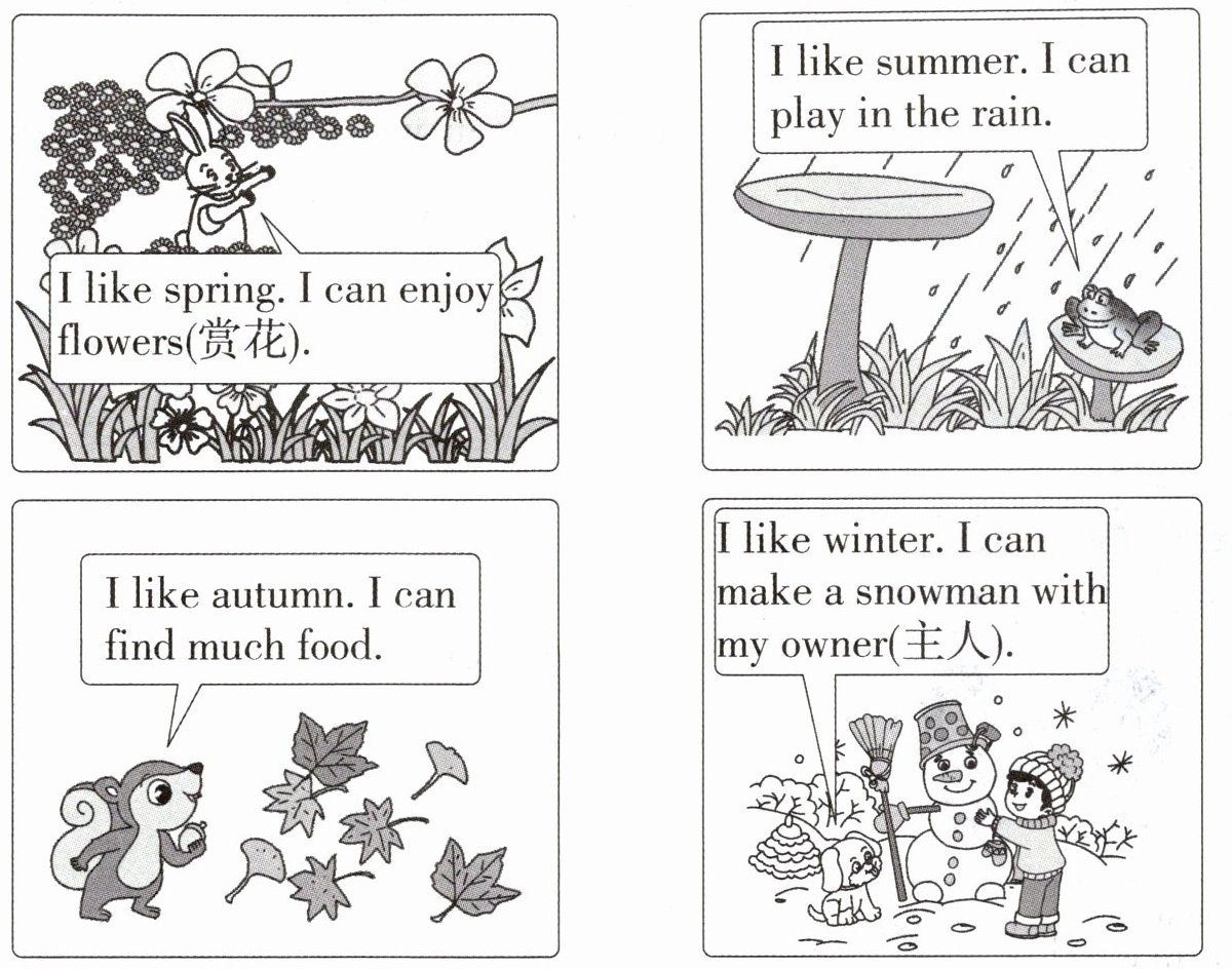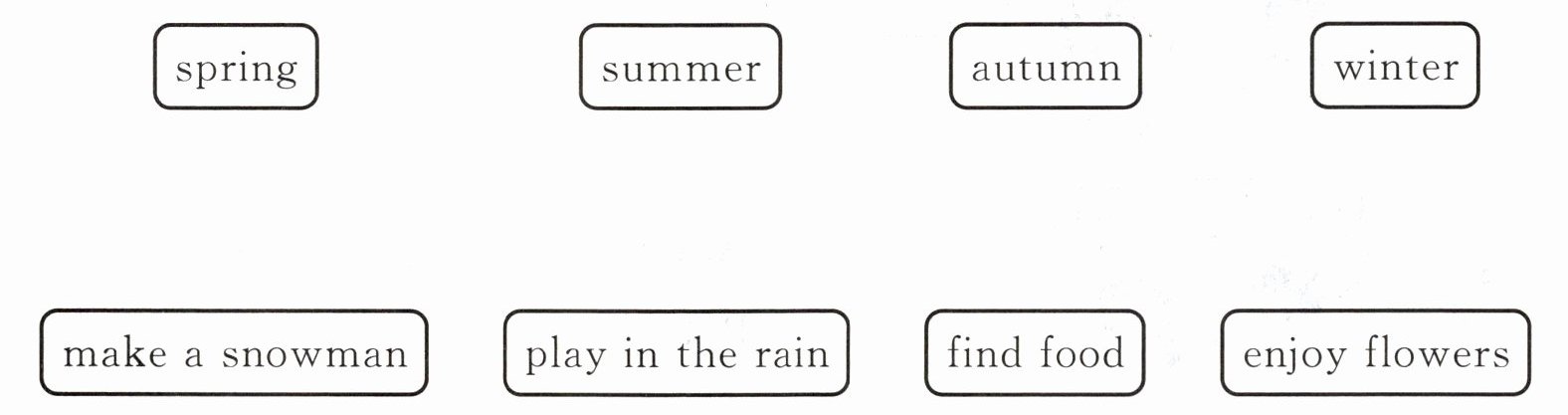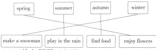 (二)绘本中的四个小动物要合唱《四季歌》,请根据它们喜欢的季节,为它们分配歌词。
