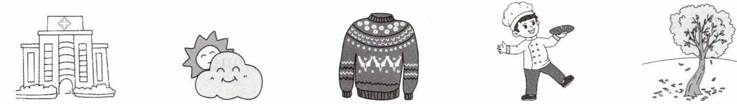 1.hospital 2.cloudy 3.sweater 4.cook 5.autumn
