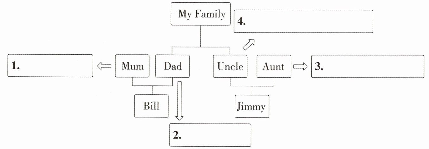 I'm Bill. I have a happy and big family. My dad is a teacher. He teaches PE in my school. My mum is a nurse. She often helps sick(生病的) people. My aunt is an office worker. My uncle is a factory worker. He makes toys in the factory. My cousin Jimmy and I are students. We are children, but we are helpful(有帮助的) at home. I can cook for my family. Jimmy can clean the home. We often look after my little sister together.