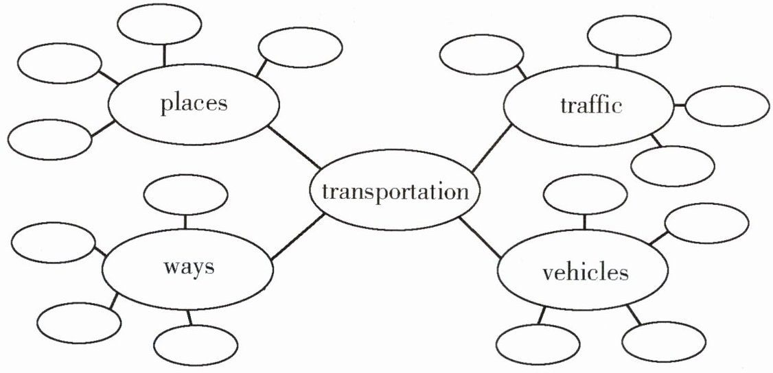 This word web is related to "transportation". Here is the completed word web with examples filled in: