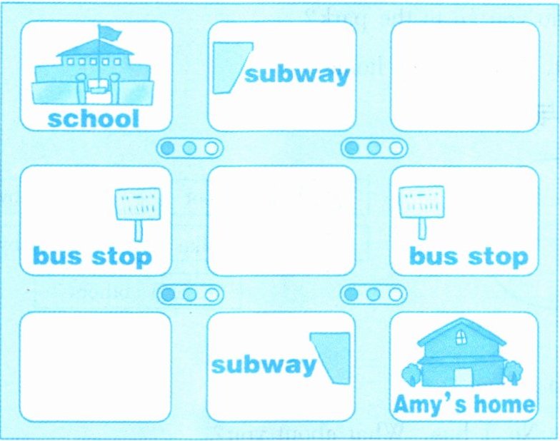 The third row shows: an empty box, subway, and Amy’s home.