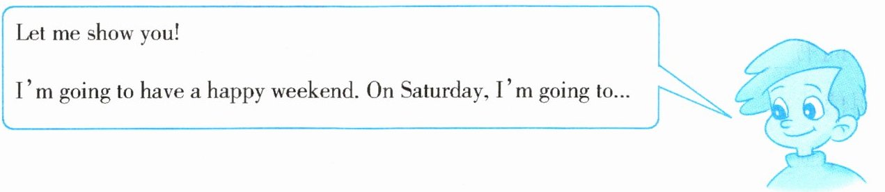 I'm going to have a happy weekend. On Saturday, I'm going to the park with my friend Tom. I'm excited because I can fly a kite. We are going there by bike at 9:30 a.m. On Sunday, I'm going to the bookstore with my sister. I love reading, so I want to buy some interesting books. We are going there on foot at 2:00 p.m. I think I will have a great weekend.