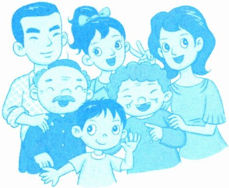 I have a warm family. We live in Guangzhou. This beautiful woman is my mother. She is a nurse. She works in a hospital and usually goes to work by bus. My father is a police officer. He is brave and strong. He often goes to work by motorcycle. This old man is my grandfather. He is a retired teacher. He likes playing chess. My grandmother is a housewife. She always cleans the house and makes nice food. The little boy is my brother. He is seven years old. Who is the girl with glasses? It's me! I am a student. I go to school by bike every day. I love my family!