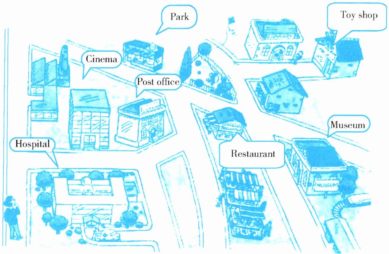 A.Label the buildings or places in the picture as you like and talk about their positions.