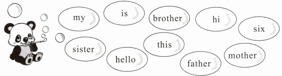 Ⅱ. 大熊猫吹泡泡。把表示家庭成员的单词泡泡涂上你喜欢的颜色。