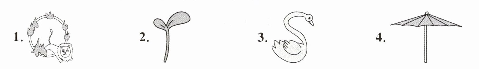 Ⅰ. 同学们画了四幅字母创意画,你能看出他们画的是哪些字母吗?预习课本后,在四线三格中写出对应字母的大小写形式。
