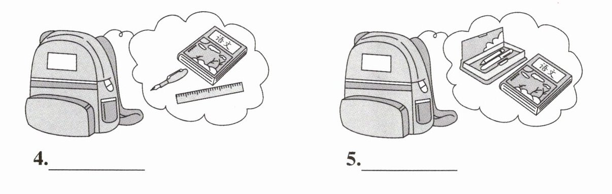 (二)下面的两个书包分别是谁的呢?在书包下面写出对应的人名。