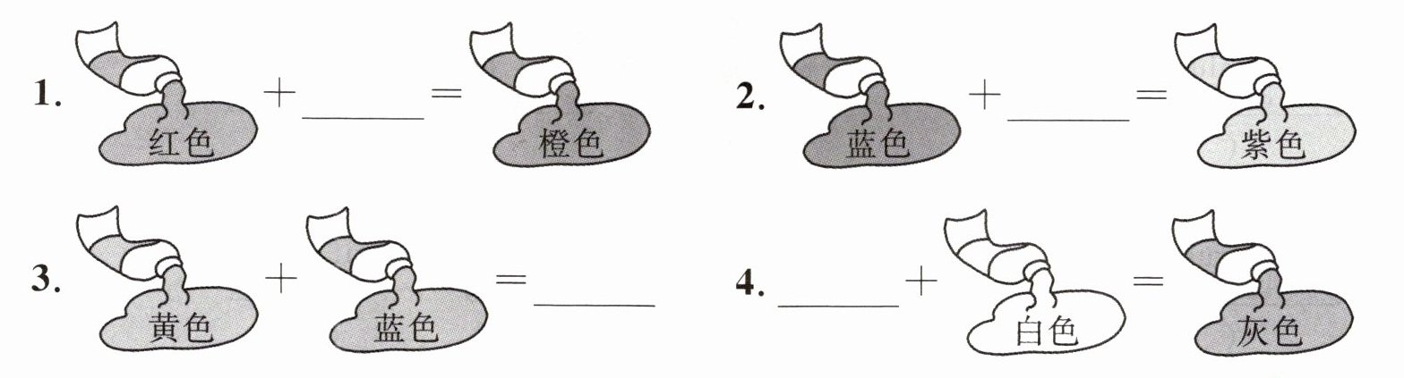 Ⅱ.你知道不同的颜色混合可以调合成其他的颜色吗?根据常识,选择相应的选项,试着调一调色吧。