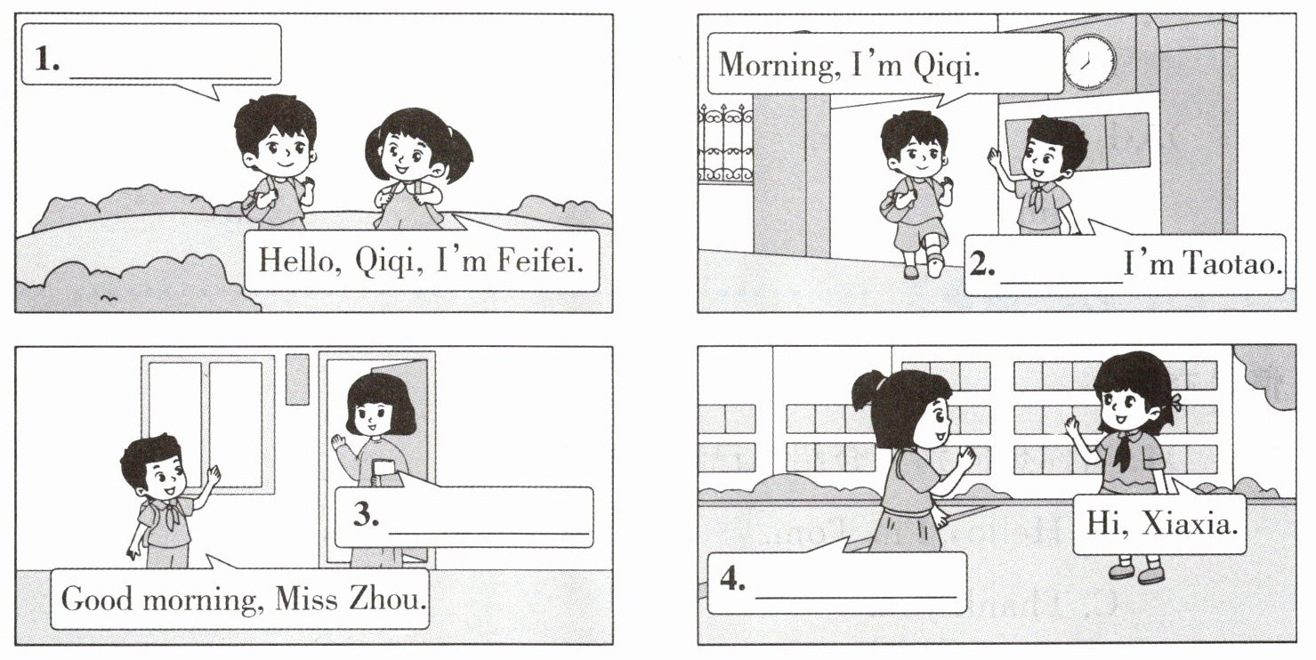 A. Hello,I'm Qiqi. B. Good morning. I'm Miss Zhou.
