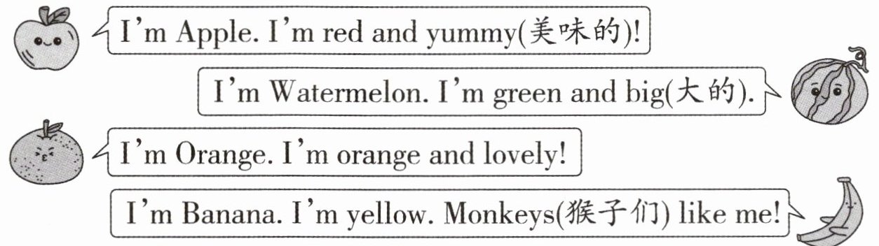 )4. Monkeys like ______.A. apples B. oranges C. bananas