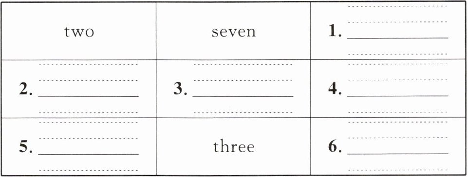 1. six 2. nine 3. five 4. one 5. four 6. eight