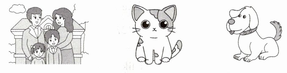 Hello, my name is Junjun. I'm nine. This is my family. I have(有) a sister. She is Huihui. She is five. She likes the cat. But(但是) I like the dog.
