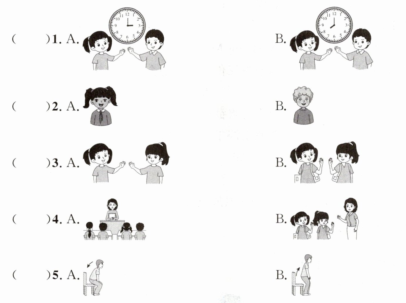 )5. A. Good morning. B. Bye.