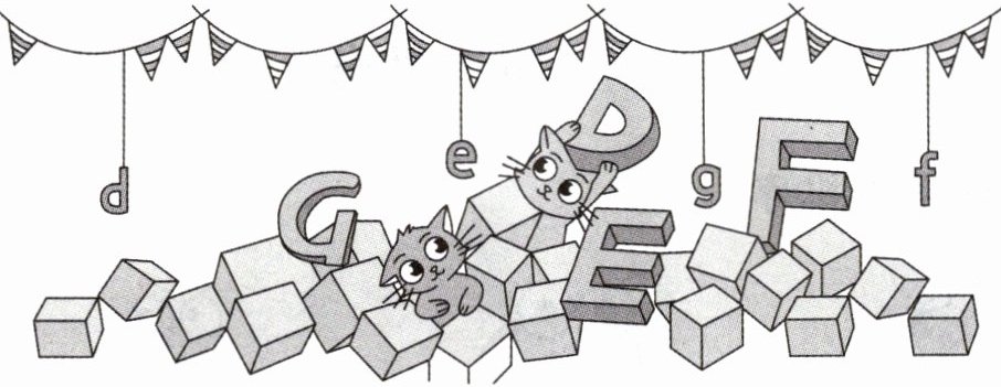 Ⅳ. 找出图中的字母,并将字母的大小写形式按字母表的顺序写在四线三格中。