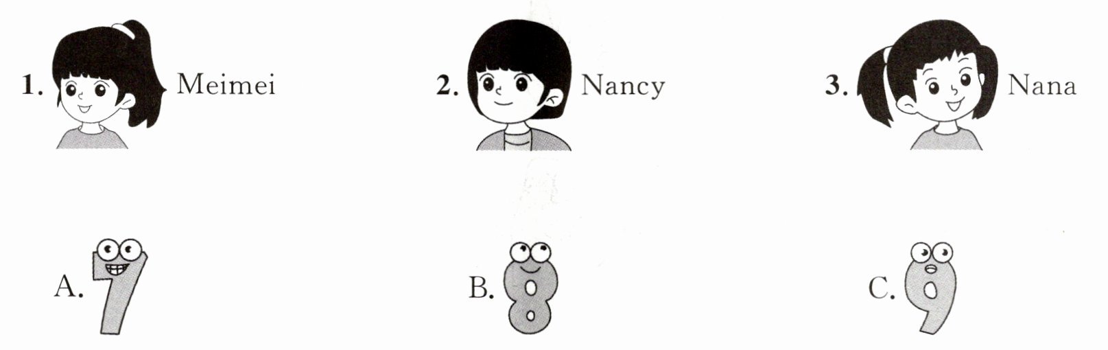 1. —How old are you, Meimei? —I'm nine. 2. —How old are you, Nancy? —I'm seven. 3. —How old are you, Nana? —I'm eight.