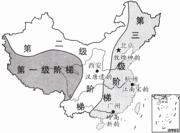 读中国地势三级阶梯分布示意图,完成 5~7 题。