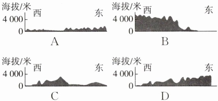 5. 下列地形剖面示意图,能反映沿 $30^{\circ}N$ 地势起伏状况的是( )