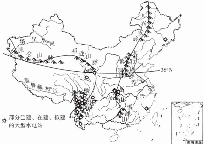 材料三 我国地势三级阶梯及部分大型水电站分布示意图。