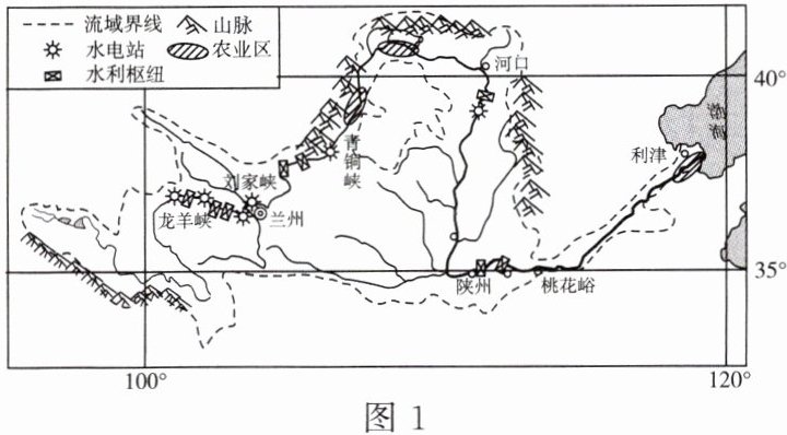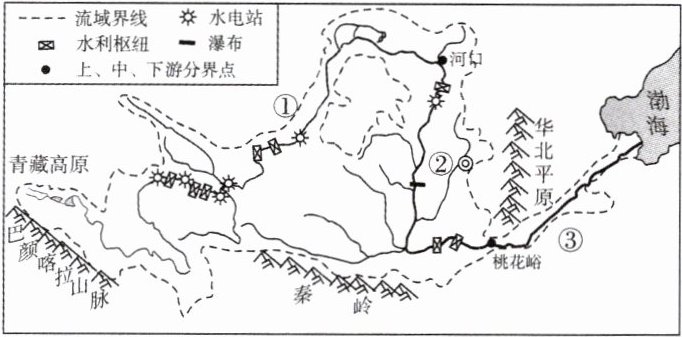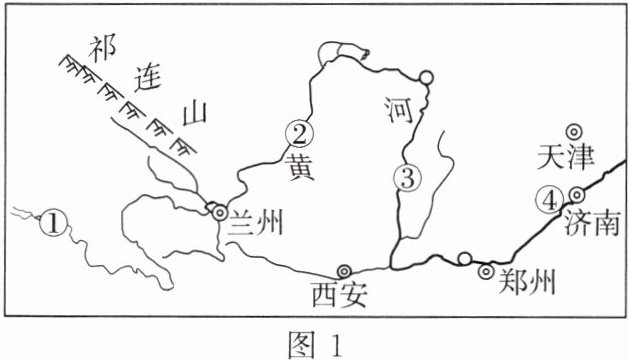 2024 年 9 月 10—13 日,国家领导人在甘肃省考察黄河流域生态保护,提出“让黄河成为造福人民的幸福河”。读黄河流域示意图,完成 1~3 题。