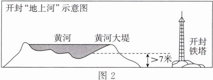 黄河哺育了灿烂的中华文明,但其也存在着许多生态问题。读黄河流域图(图 1)和开封“地上河”示意图(图 2),完成 4~5 题。