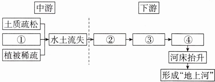 小李同学在看纪录片时,深深体会到黄河之“安”的重要意义。回顾地理课上学过的黄河下游“地上河”,结合纪录片,绘制了“地上河”形成的思维导图。