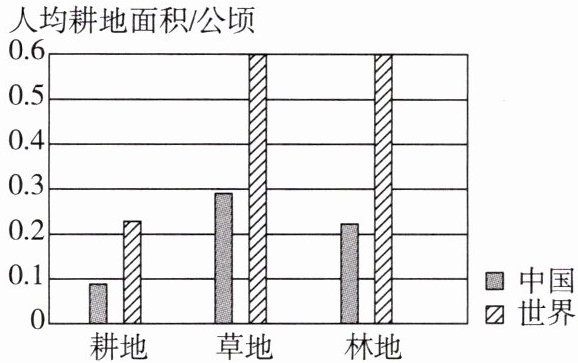 下图为我国人均农业用地面积与世界的比较图。读图,完成 5~6 题。