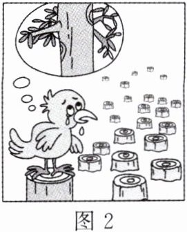 (4)漫画(图 2)中小鸟哭泣的原因是哪种资源遭到严重破坏?( )