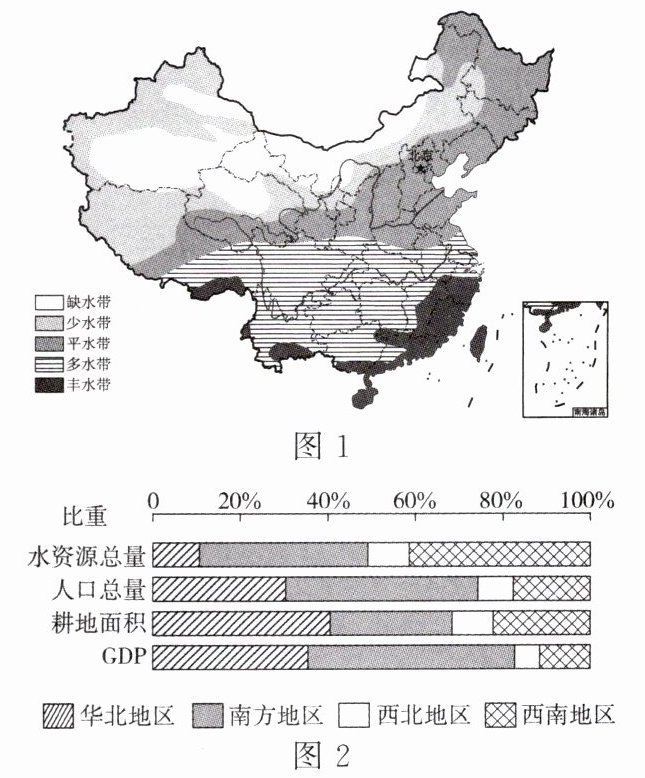 (1)读图 1 可知,我国水资源的地区分布特点是______。