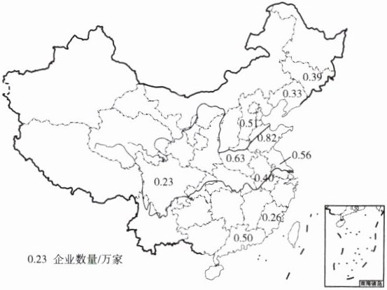 预制菜是指以农产品为原料,经工厂预加工而成的成品或半成品,冷链运输后上市,供消费者简单加热后食用。下图为中国部分省级行政区预制菜企业数量(大于 0.2 万家)分布示意图。据此完成 3~4 题。