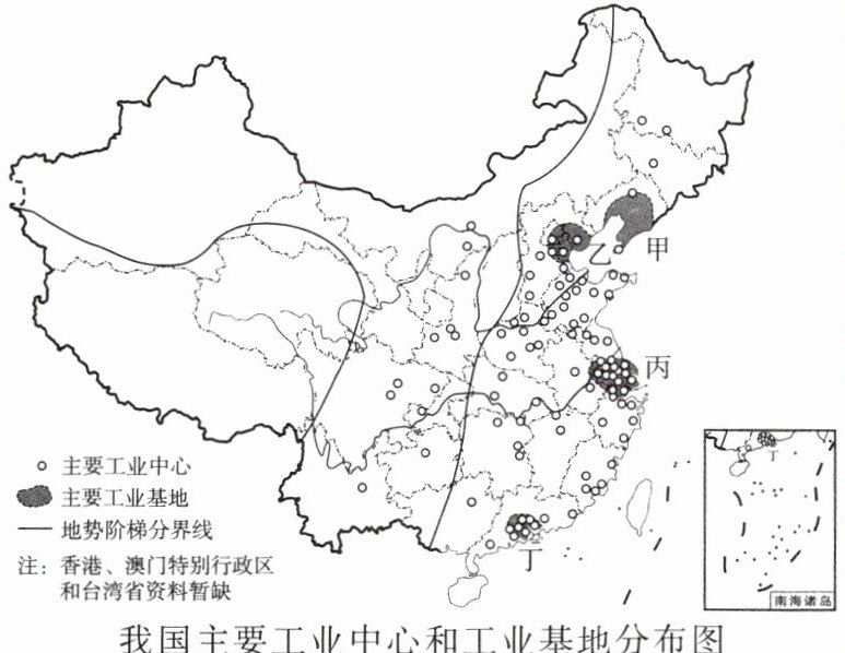 (3)从图中可以看出,我国工业基地和工业中心主要分布于地势第______级阶梯,多沿______、沿______、沿交通干线分布,利于______联系。