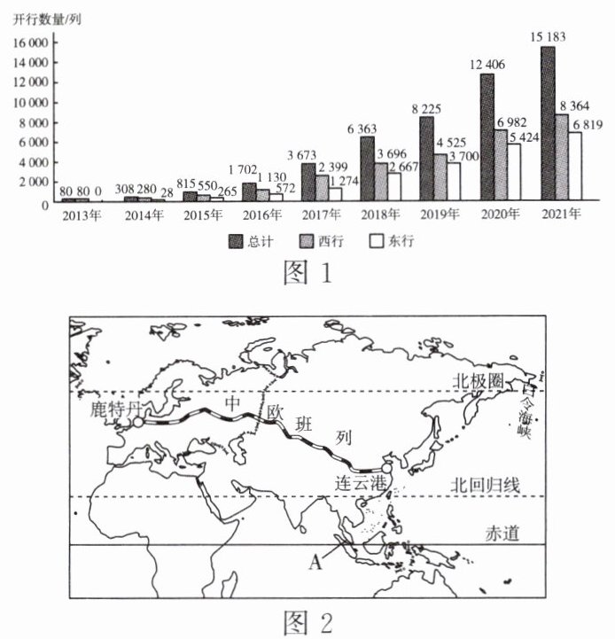 (1)简述 2013—2021 年中欧班列开行数量的特征:______(言之有理即可)。